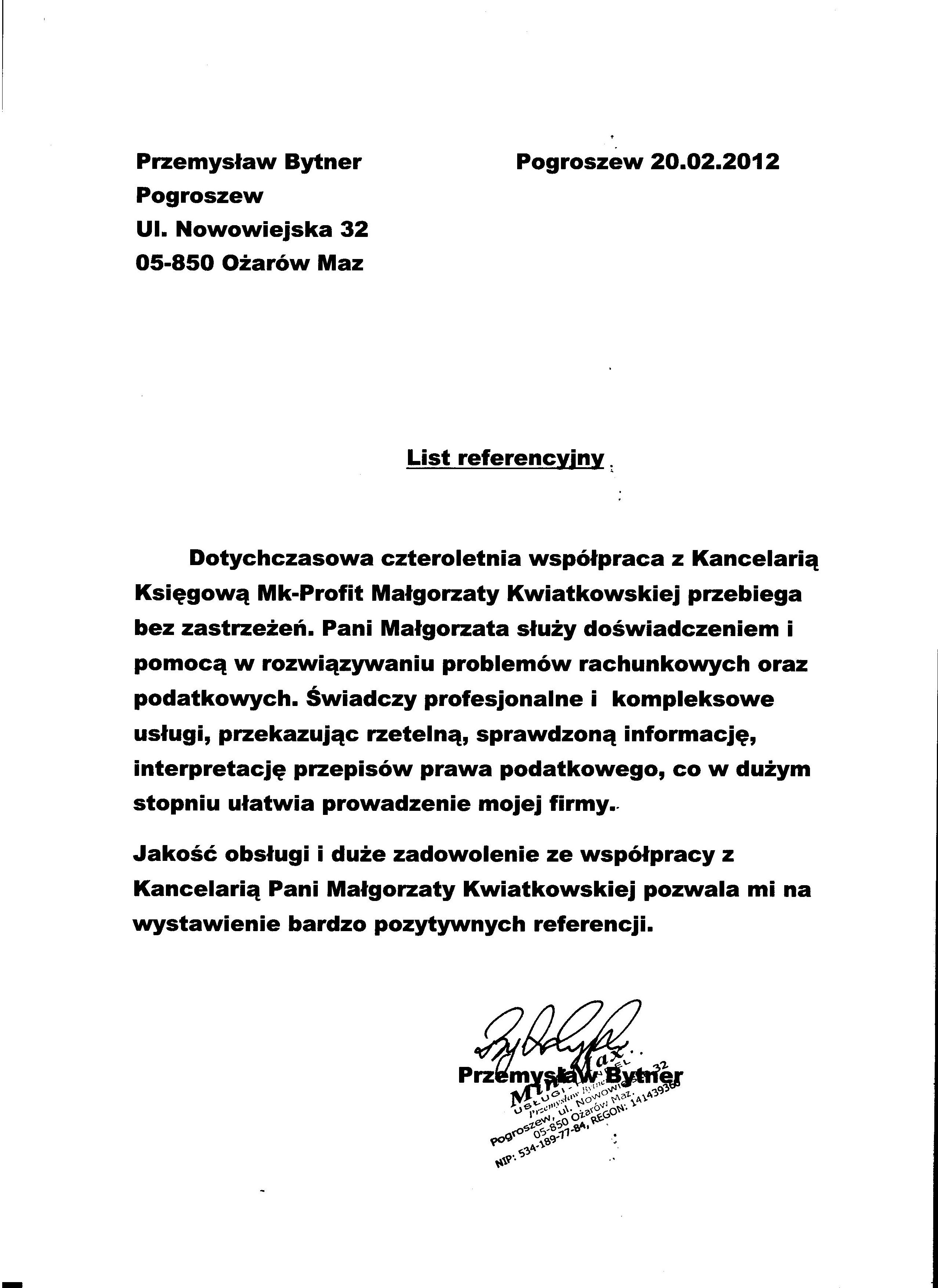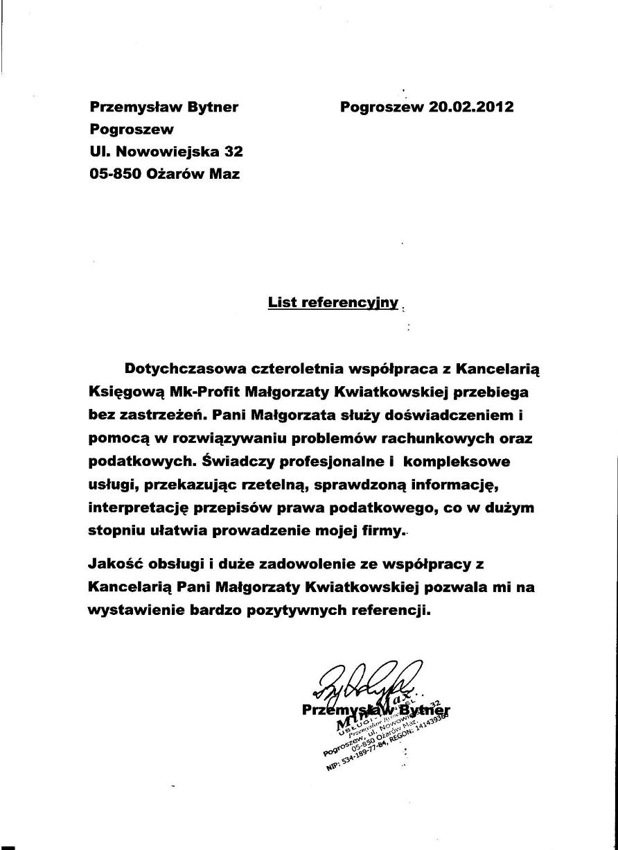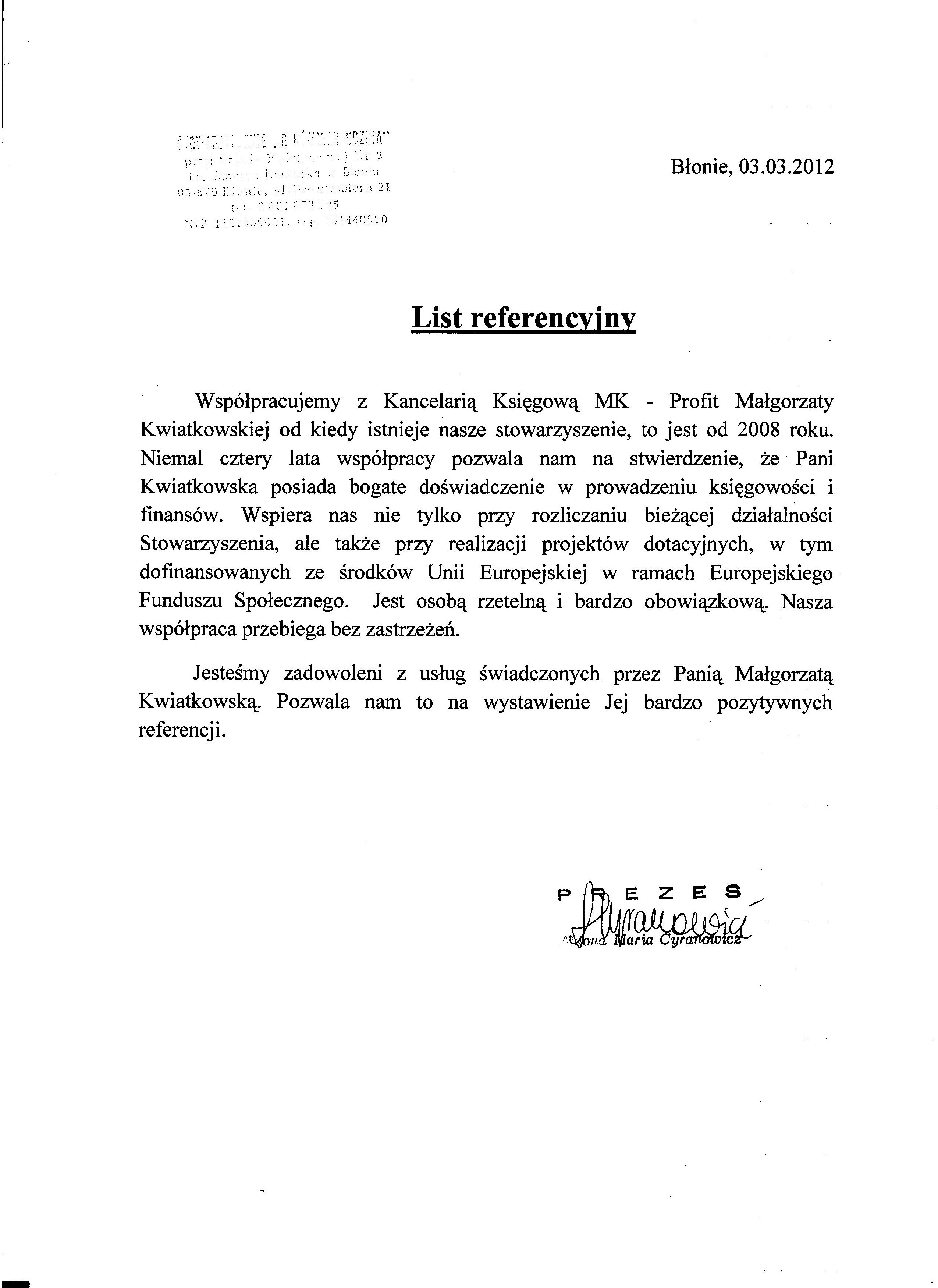 Referencje, które otrzymaliśmy od naszych zadowolonych klientów: